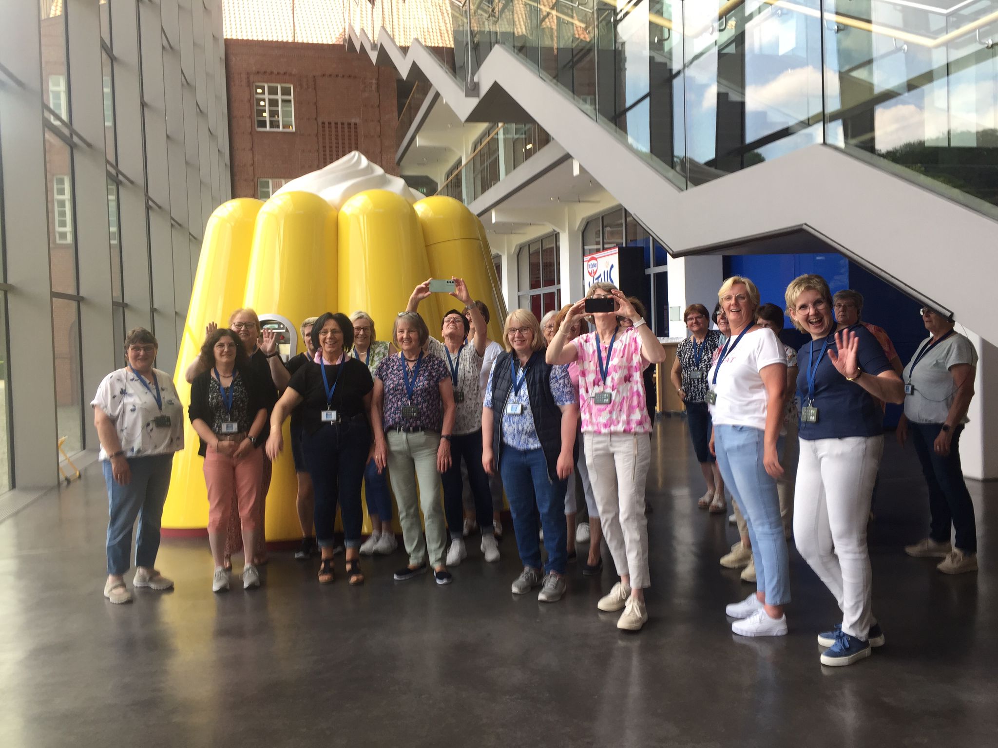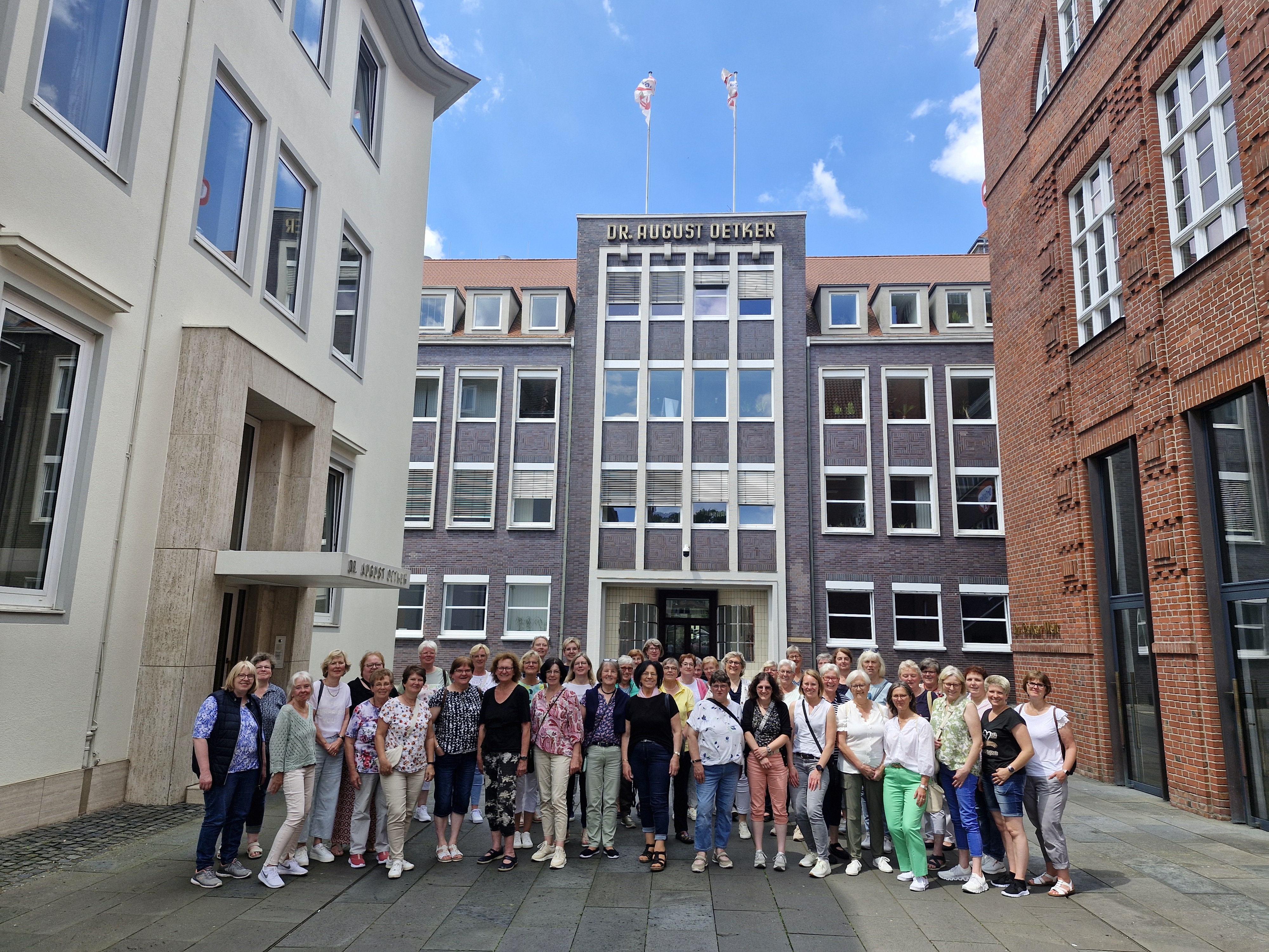 Am Montag, den 24. Juni 2024 starteten 45 Frauen mit dem Bus Richtung Bielefeld. Nach ca. 1 Stunde wurde am Rastplatz Teutoburger Wald eine Pause eingelegt, bei der die Frauen sich mit Kaffee und belegten Brötchen stärken konnten. Anschließend ging es weiter zur Dr. Oetker Welt. Während der zweistündigen Führung bekamen die Frauen einen guten Einblick in das Unternehmen Dr. Oetker und dessen Geschichte. Ein Highlight war dabei die Pause, in der jede Frau sich einen warmen Vanillepudding herstellen durfte. Im Anschluss an die Führung nahmen die Frauen dann im Bistro des Hauses Platz. Hier konnten die Produkte des Unternehmens von Pizza über Kuchen bis hin zum Nachtisch probiert werden. Es wurde kräftig geschlemmt, bevor die Gruppe sich wieder auf den Heimweg nach Beesten machte.