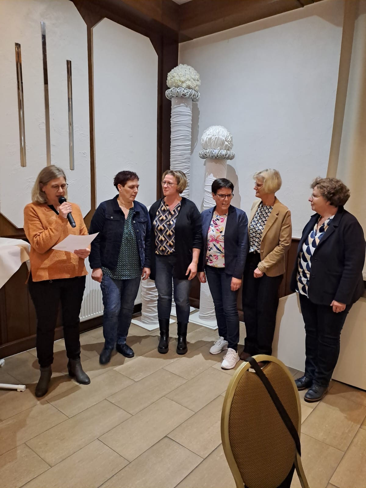 Das Leitungsteam der kfd-Beesten konnte zur diesjährigen Generalversammlung am Sonntag, den 17.11.2024 100 Gäste willkommen heißen. Annegret Jürling, die Teamsprecherin, führte durch das abwechslungsreiche Nachmittagsprogramm und bedankte sich bei der Lena-Gruppe für den kreativen Tischschmuck.
