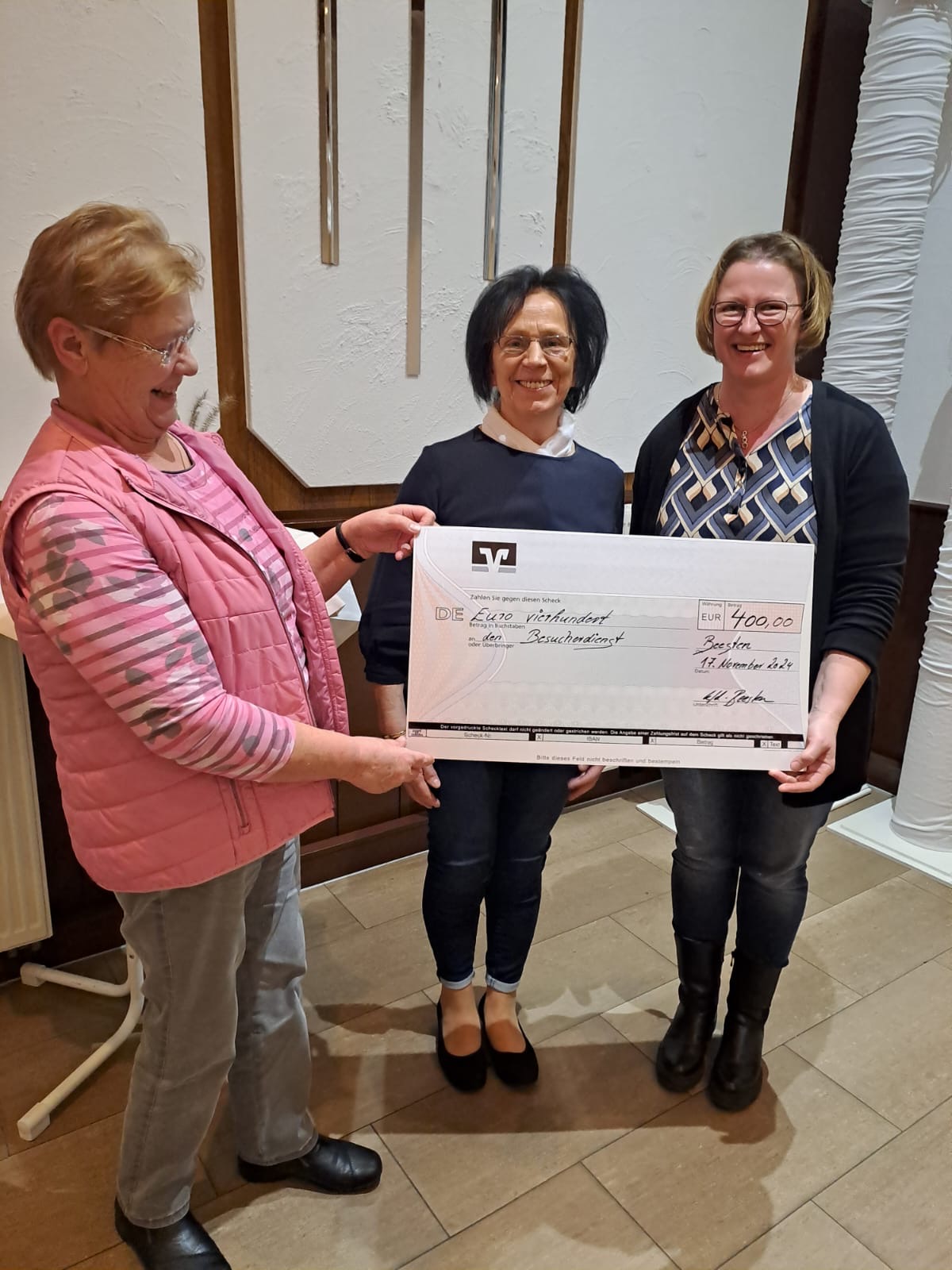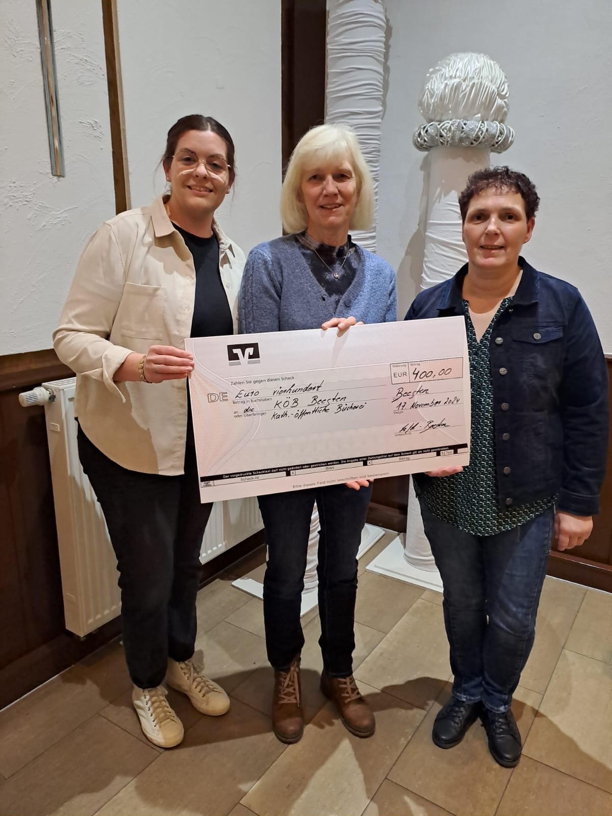 Eine besondere Freude war es uns, das in den kfd-Messen eingesammelte Kollektengeld – mittlerweile 800 € – an zwei engagierte Gruppen der Gemeinde zu überreichen. Je 400 € erhielten: DIE BÜCHEREI und der BESUCHERDIENST in Beesten. Für beide Gruppen eine großartige und wertvolle Unterstützung der ehrenamtlichen Arbeit!