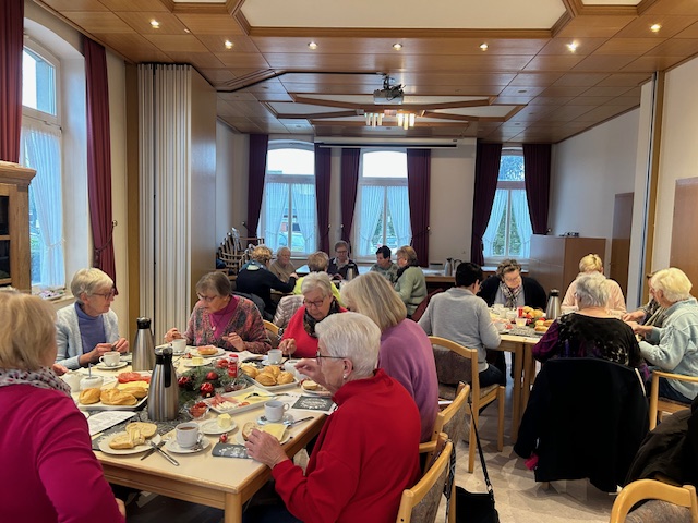 .. dieser adventliche Vornittag war eine wunderbare Unterbrechung im Alltag für viele Frauen. Nach der Gemeinschaftsmesse beim leckeren Frühstück NEUES aus der Gemeinde erfahren und neue Kontakte knüpfen. Mit lustigen und besinnlichen Texten und Liedern stimmten wir uns auf Weihnachten ein. Unser nächstes Treffen mit NEUJAHRSFRÜHSTÜCK ist Freitag, den 10. Januar 2025 … Wir freuen uns auf Euch!