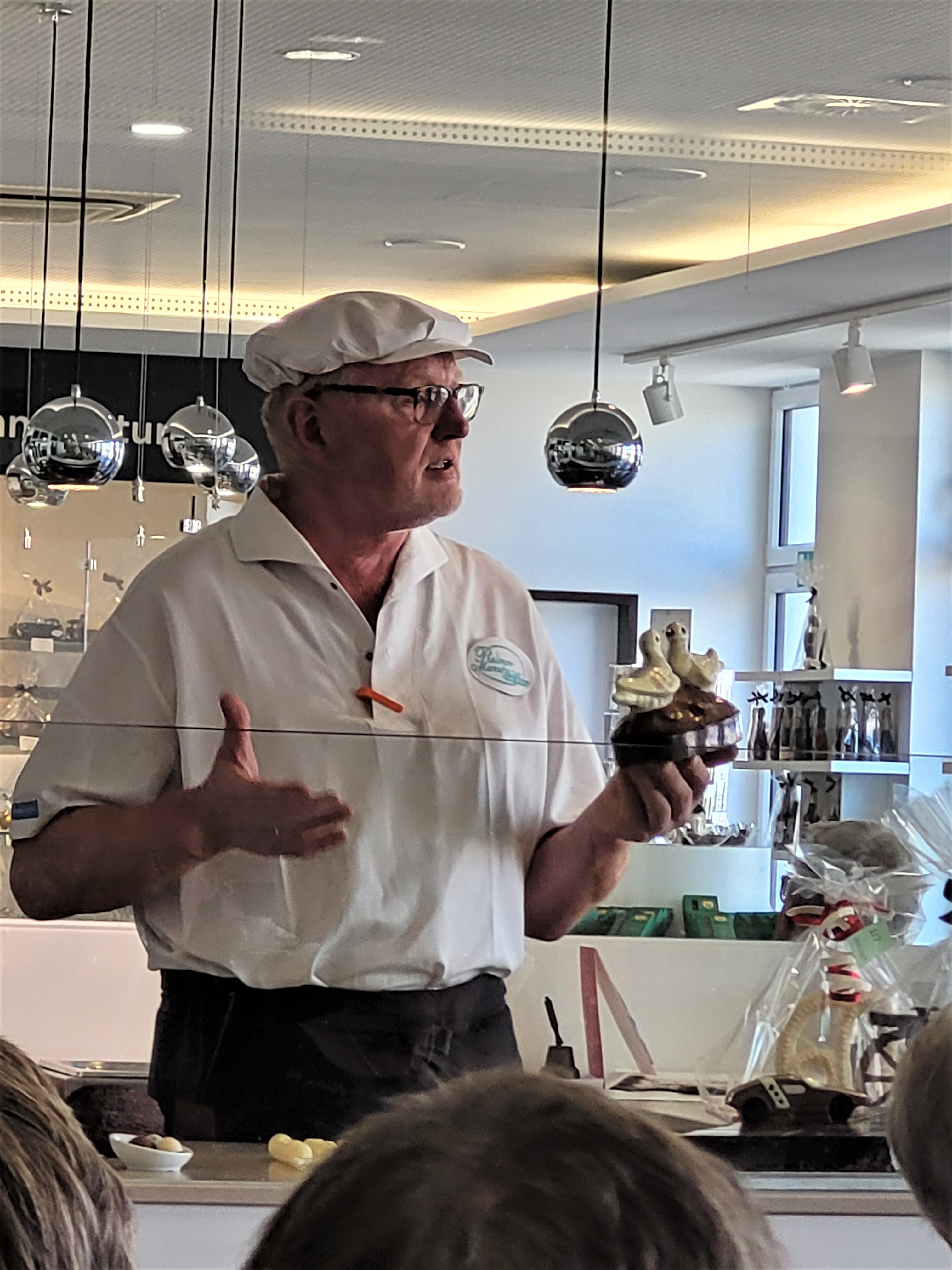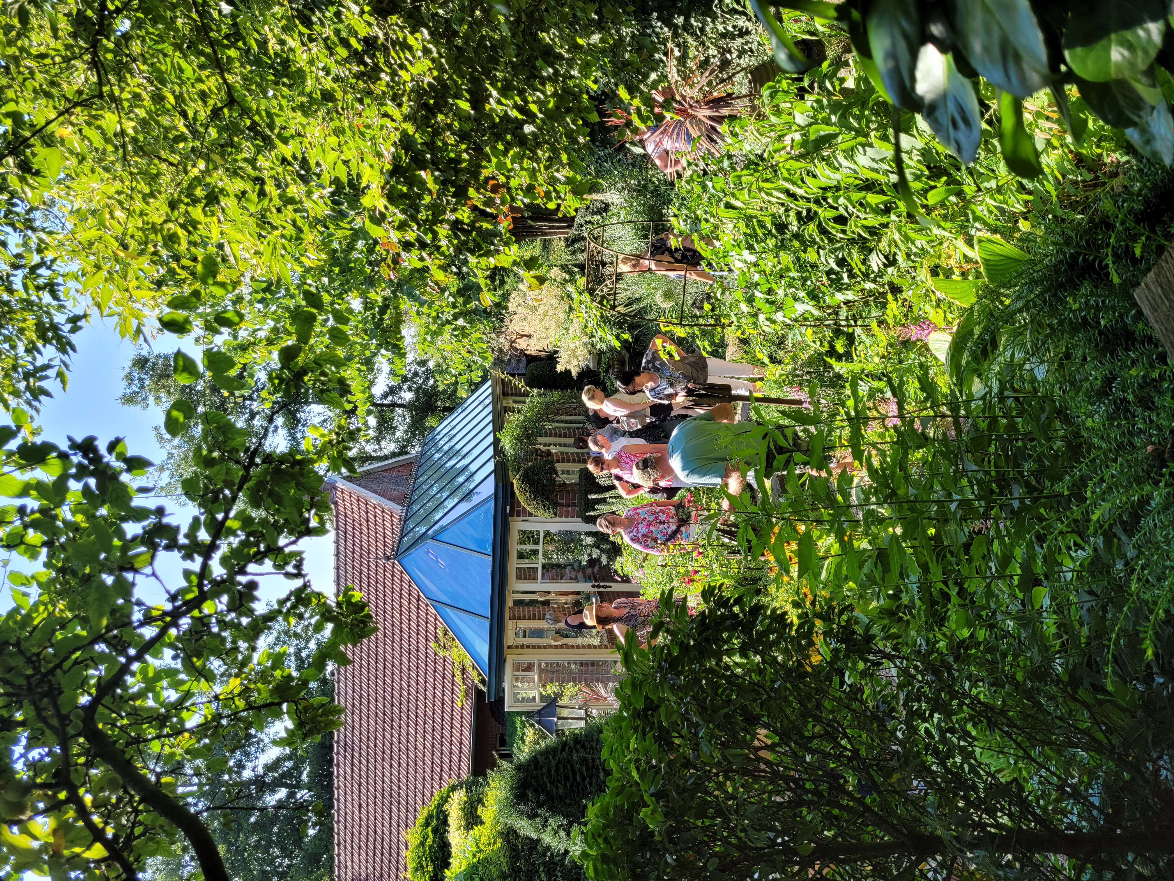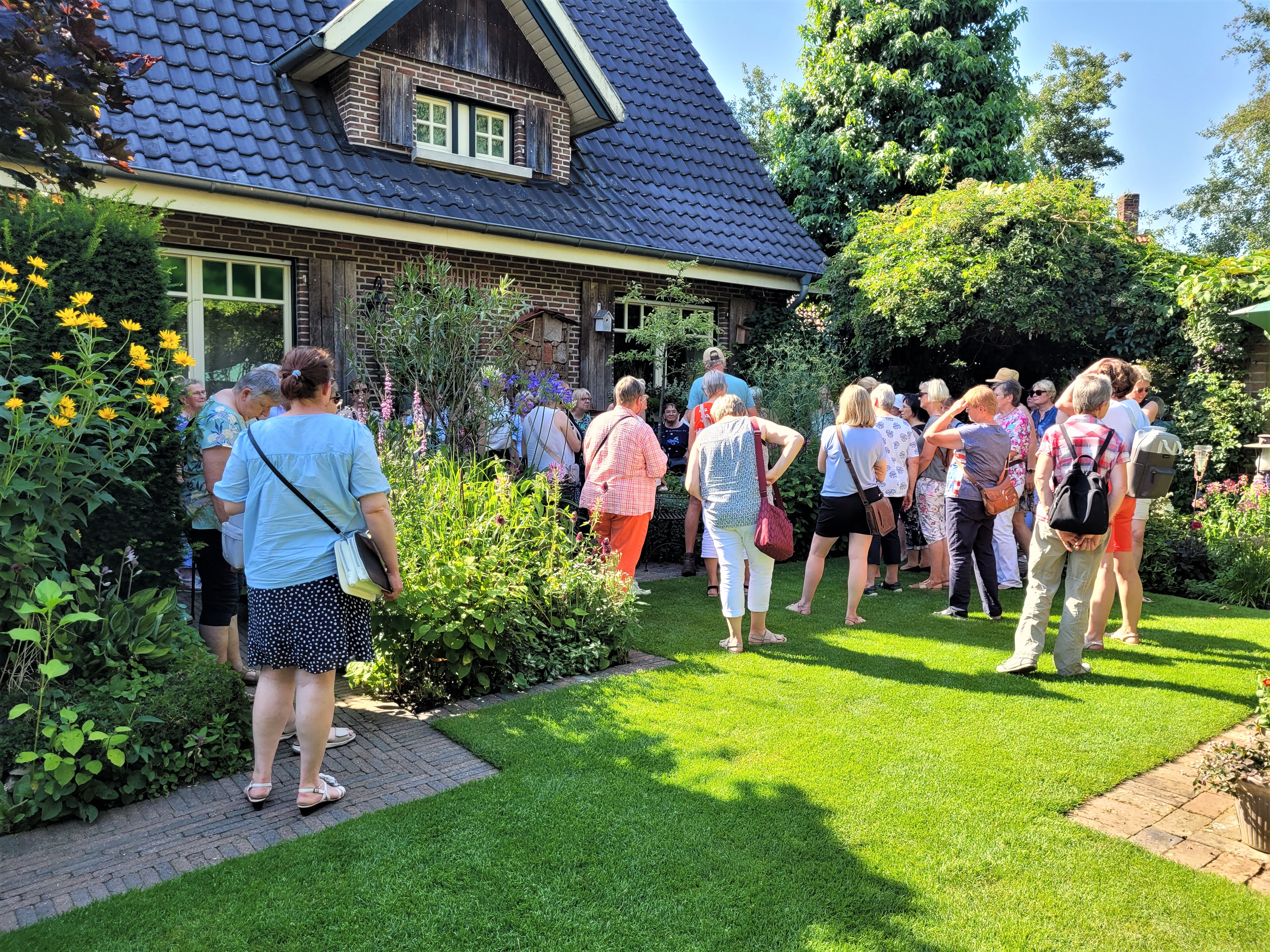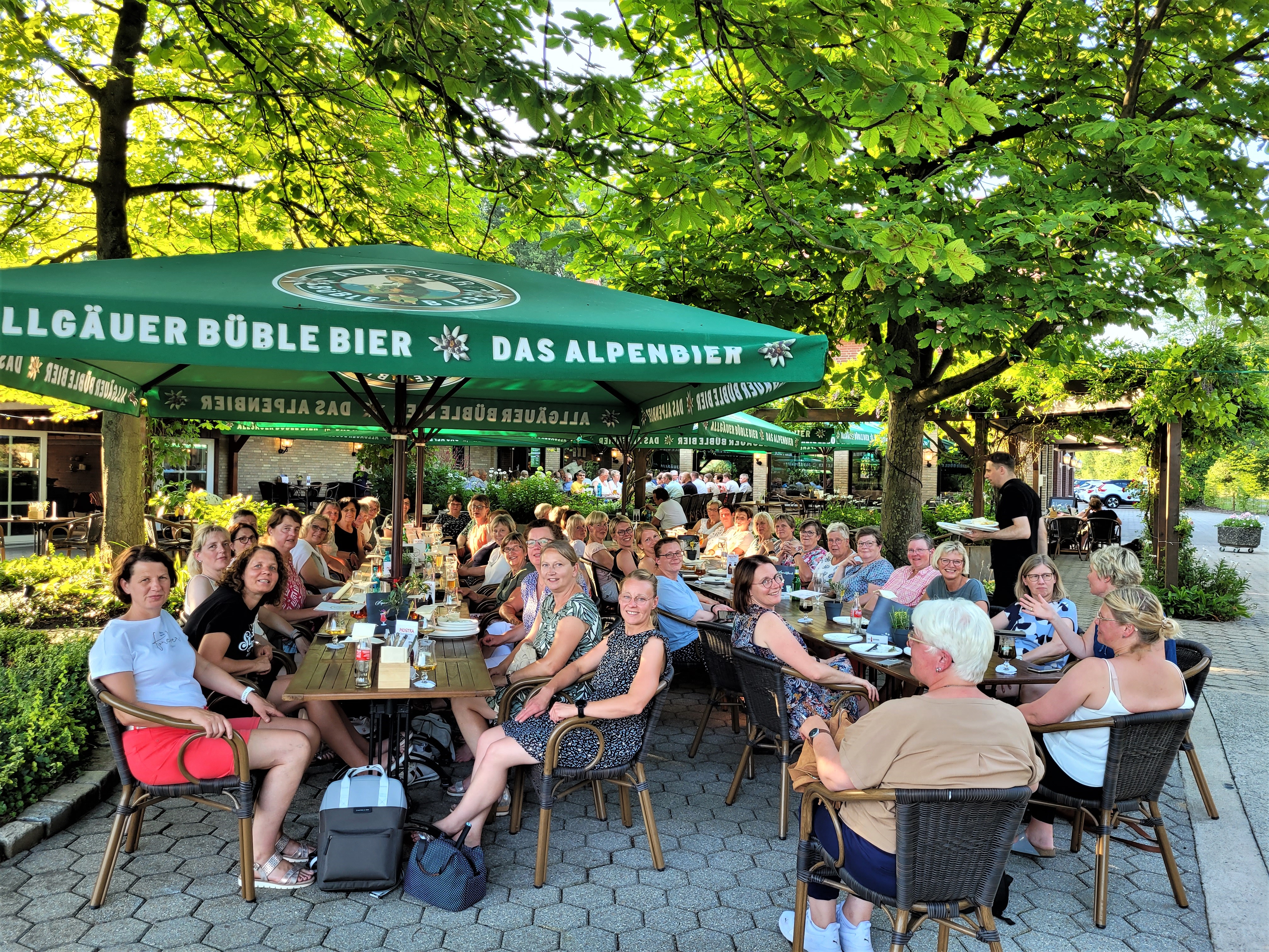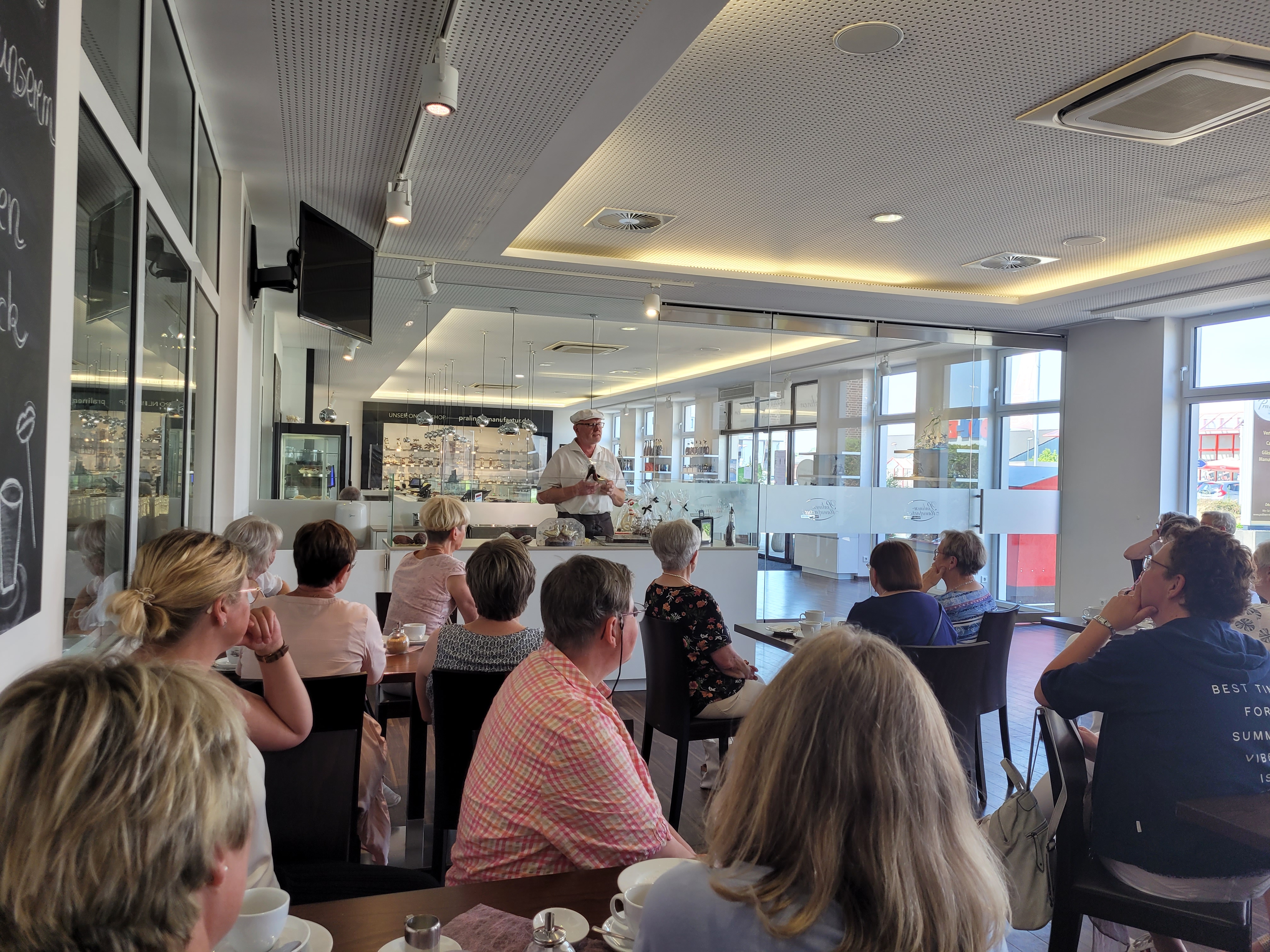 Bei brütender Hitze machten sich die Beestener kfd-Frauen am Dienstag, 19. Juli 2022 mit dem Bus auf den Weg Richtung Rhede/Borken. Als nach kurzer Fahrt die Klimaanlage im Bus ausfiel und alle in einen Ersatzbus umsteigen mussten, tat das der guten Stimmung zum Glück keinen Abbruch. Mit einer einstündigen Verspätung traf die Gruppe dann bei der Pralinen-Manufaktur Große-Bölting ein. Zunächst gab es in deren Café Kaffee und Kuchen sowie drei ausgewählte Pralinen aus eigener Herstellung. Im Anschluss erhielten die Frauen durch den Chef Herrn Große-Bölting einen Einblick in die Pralinen-Herstellung und das große Produktangebot seines Unternehmens. Nach diesen interessanten Ausführungen hatten alle noch die Möglichkeit zum Einkauf. Als nächstes stand die Besichtigung des Garten Pickers auf dem Programm. Herr Picker führte die Gruppe trotz enormer Hitze durch seinen wunderschönen 3000 qm großen Schaugarten. Über 2300 Pflanzensorten und viele schön angelegte Sitzecken und Dekorationen waren hier zu bestaunen. Gerne gab Herr Picker auch Tipps zu den verschiedenen Pflanzen, so dass es ein interessanter Besuch für alle war. Zum Abschluss des Ausflugs gab es noch ein Abendessen im griechischen Restaurant Estia in Borken bevor es zurück nach Beesten ging.