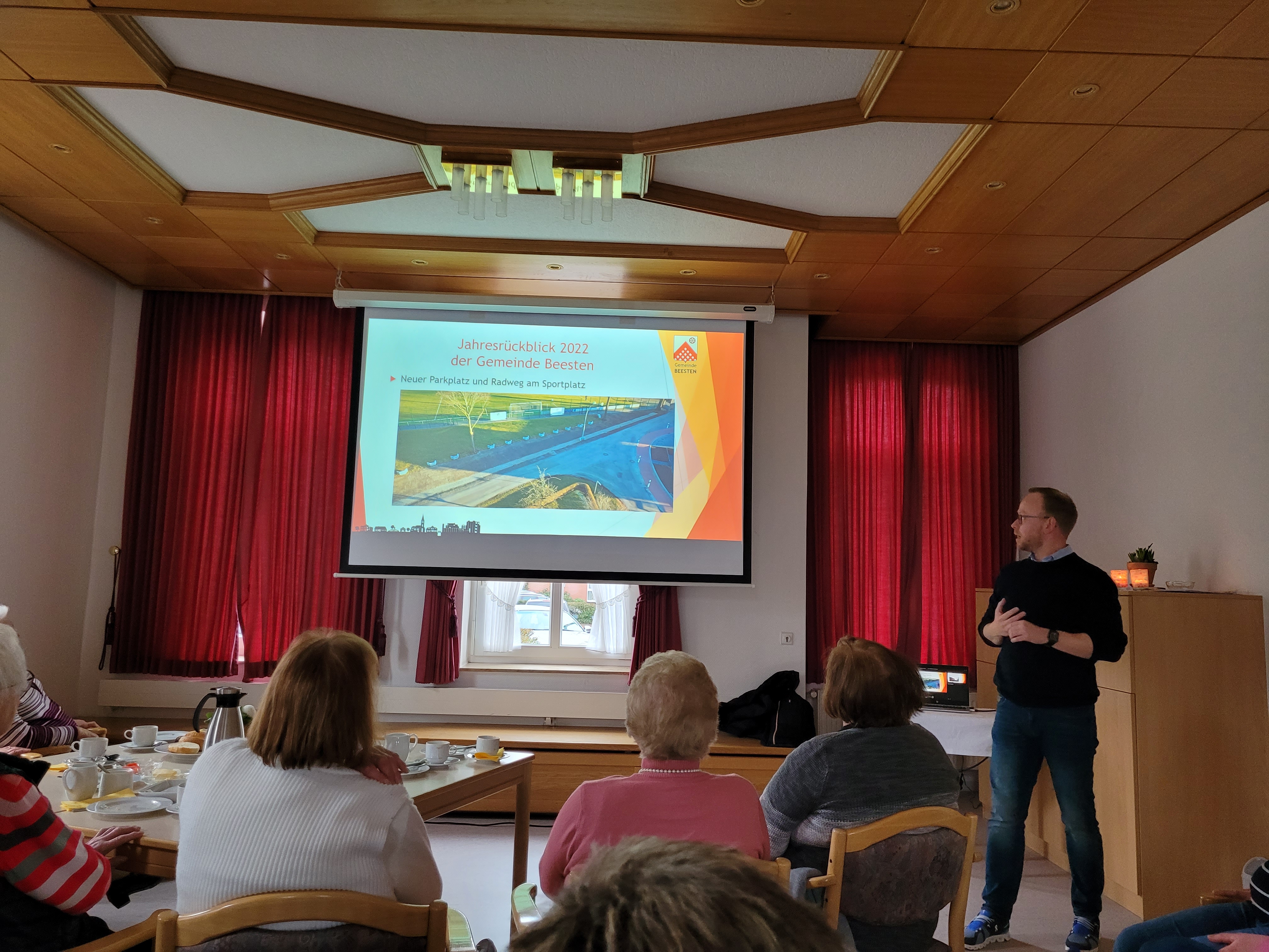 Am 10. März nahmen 40 Frauen am gemeinsamen Frühstück nach der kfd-Messe teil. An diesem Morgen war der stellvertretende Bürgermeister von Beesten, Tobias Schnier, zu Gast. Er informierte die Frauen über die Planungen der Gemeinde Beesten für das Jahr 2023 und blickte nochmal auf das vergangene Jahr zurück. Es war ein informativer und interessanter Vortrag.