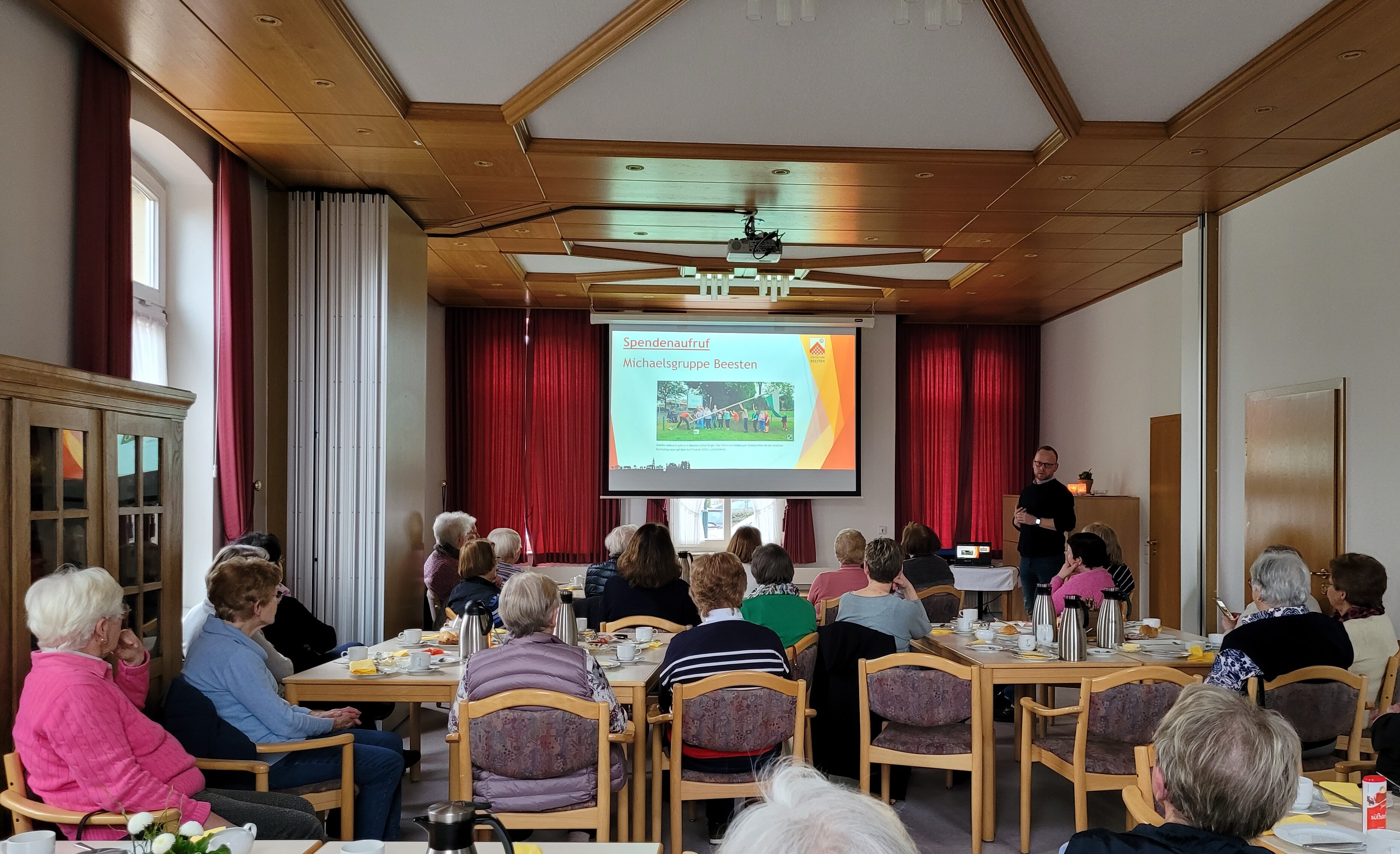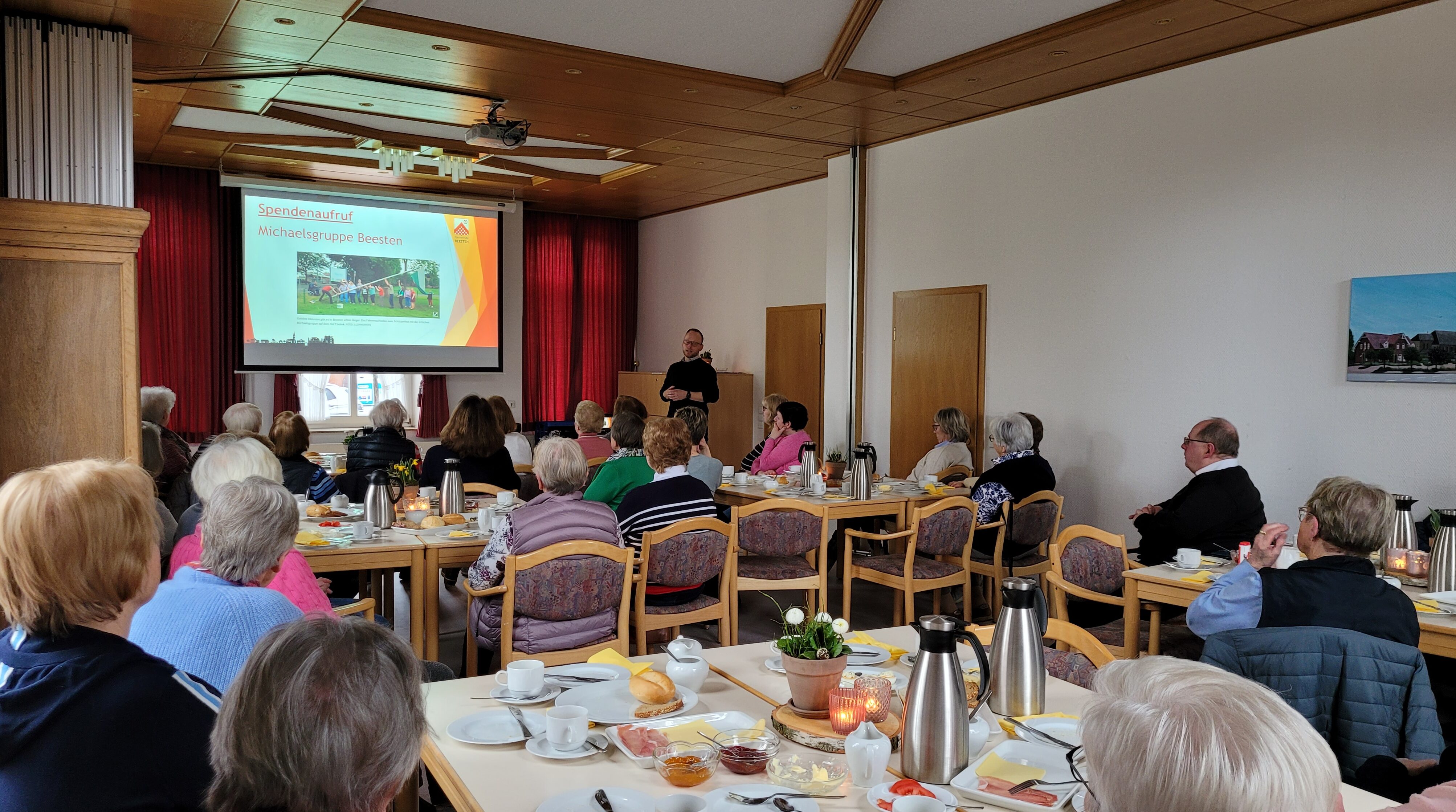 Am Freitag, den 13. Mai 2022 waren alle Besucherinnen der kfd-Gemeinschaftsmesse zum Frühstück ins Michaelhaus eingeladen. Bürgermeister Werner Achteresch war zu Gast und informierte über die Projekte der Gemeinde Beesten in 2021/2022. Es war für alle Frauen ein interessanter und informativer Vormittag.