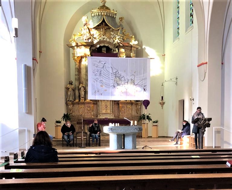 Am Mittwoch, den 6. April 2022 beteten die kfd-Frauen den Kreuzweg in der St. Servatius Kirche in Beesten. Die Margariten-Gruppe gestaltete einen modernen Kreuzweg mit 5 Stationen.