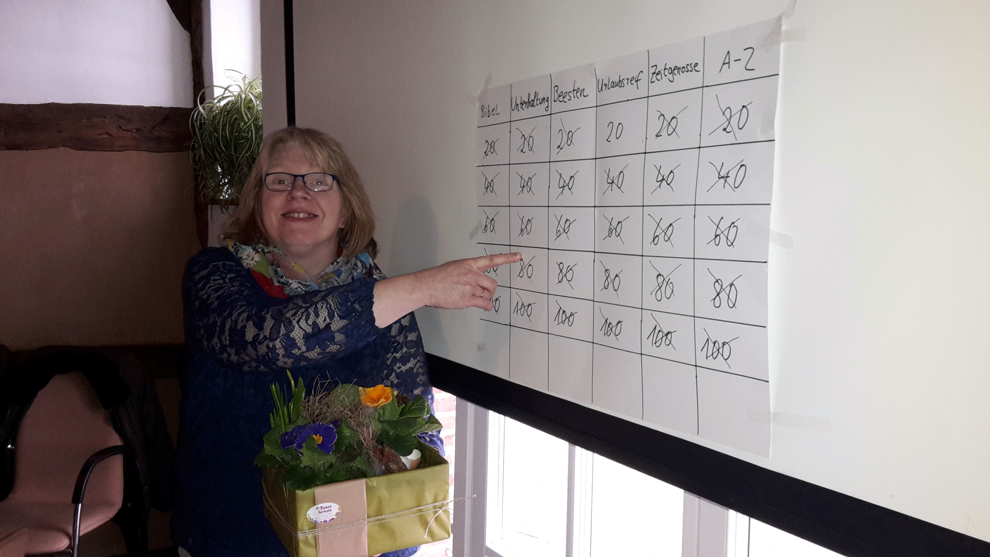 An diesem Morgen wurde ein Quiz gespielt, das von Maria Schröder vorbereitet wurde. Es ging dabei um Wissensfragen aus den Kategorien BEESTEN, BIBEL, ZEITGENOSSEN, URLAUBSREIF, UNTERHALTUNG und A-Z. Jede Tischgruppe bildete ein Rateteam und am Schluss konnte sich das Siegerteam über eine Tüte selbstgemachte Pralinen freuen. Es war ein interessanter und lustiger Vormittag, an dem alle Frauen ihren Spaß hatten.
