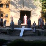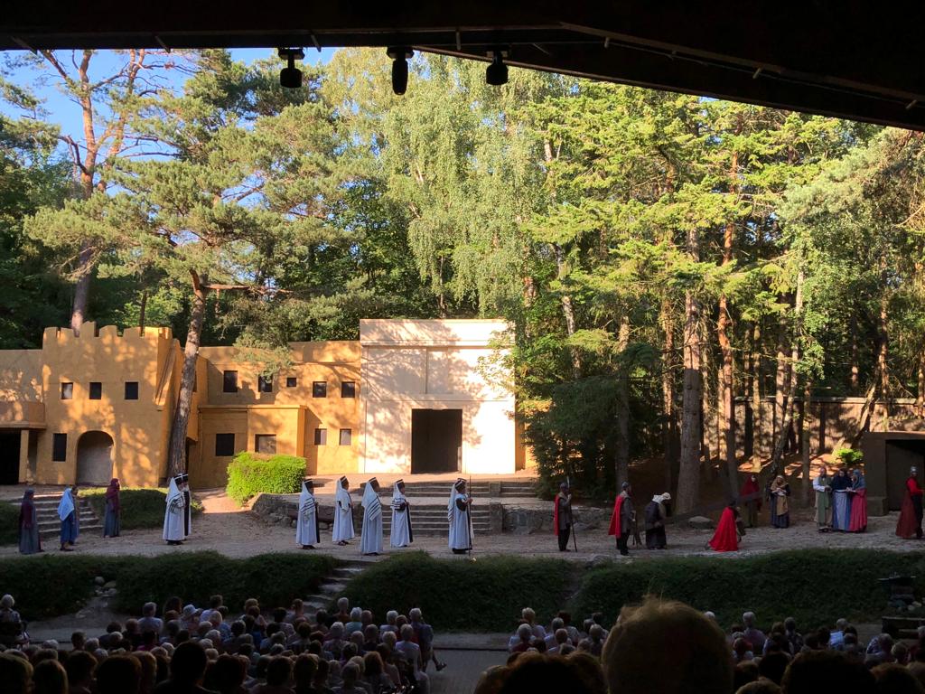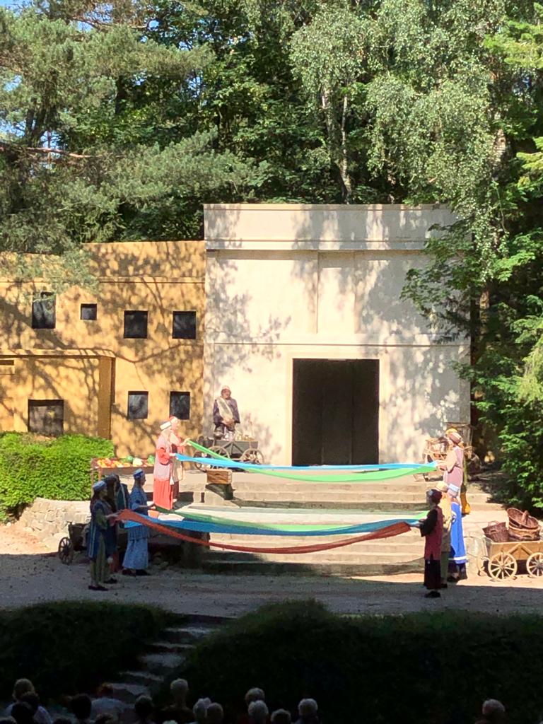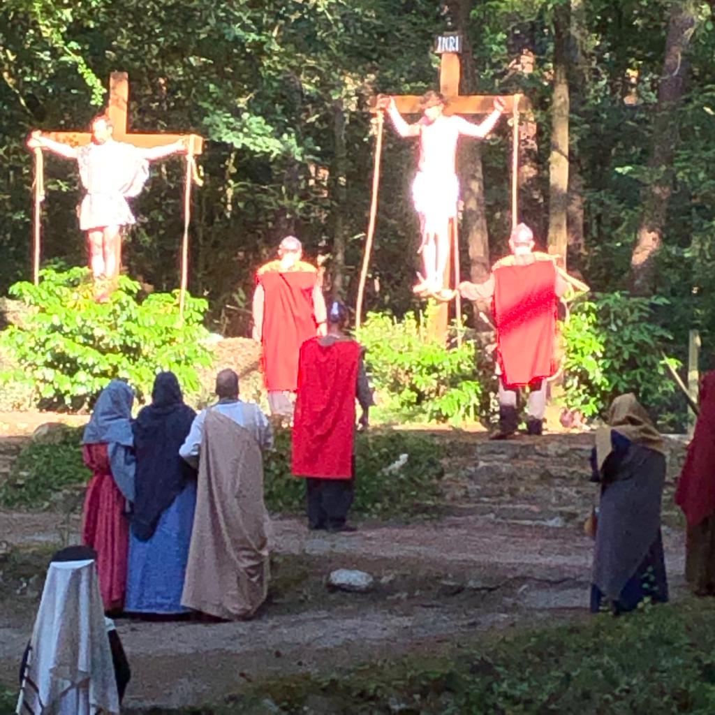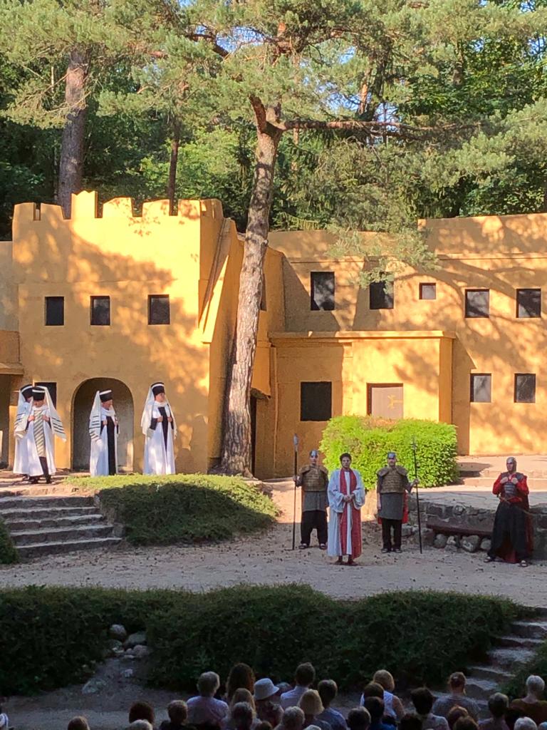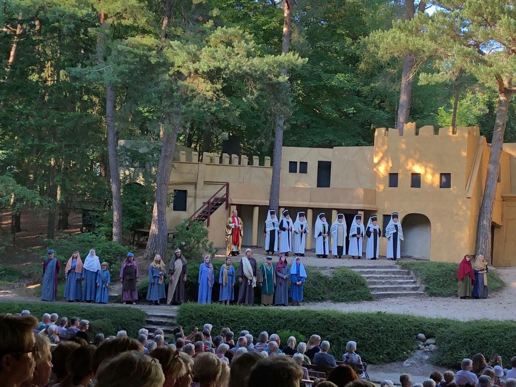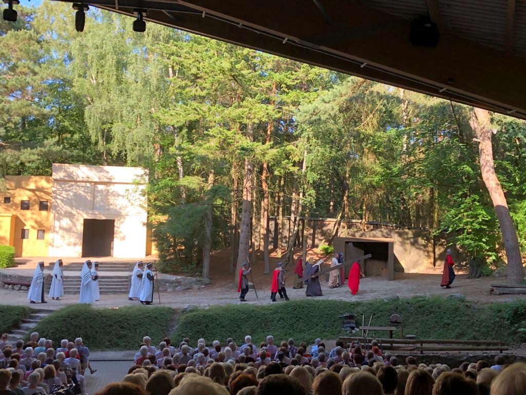 Am Donnerstag, 23. Juni 2022 nahmen wir an der Frauenkundgebung auf der Waldbühne Ahmsen teil. Nach der Ankunft stärkten sich die Frauen zunächst mit Kaffee und Kuchen. Nach einigen Vorträgen, u.a. von der Vorsitzenden des Katholikenrates Frau Katharina Abeln, begann das Stück „Die Passion“. Die Aufführung war sehr sehenswert und ein voller Erfolg.
