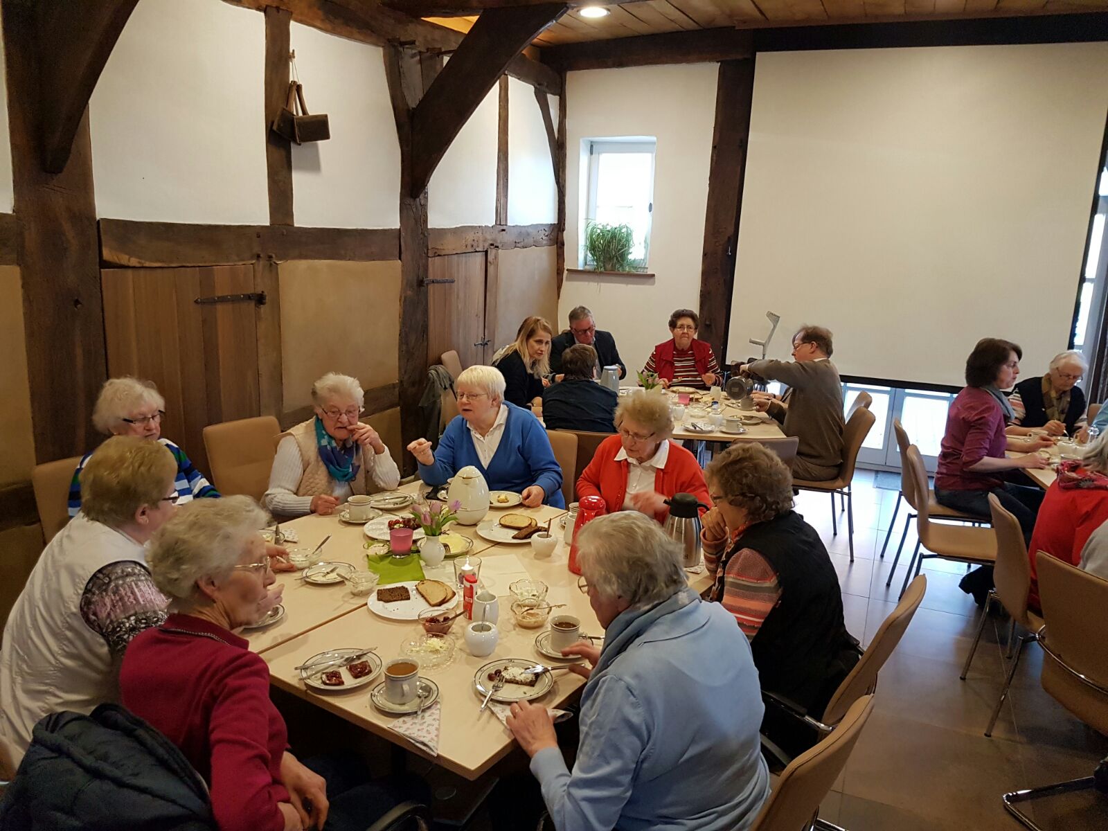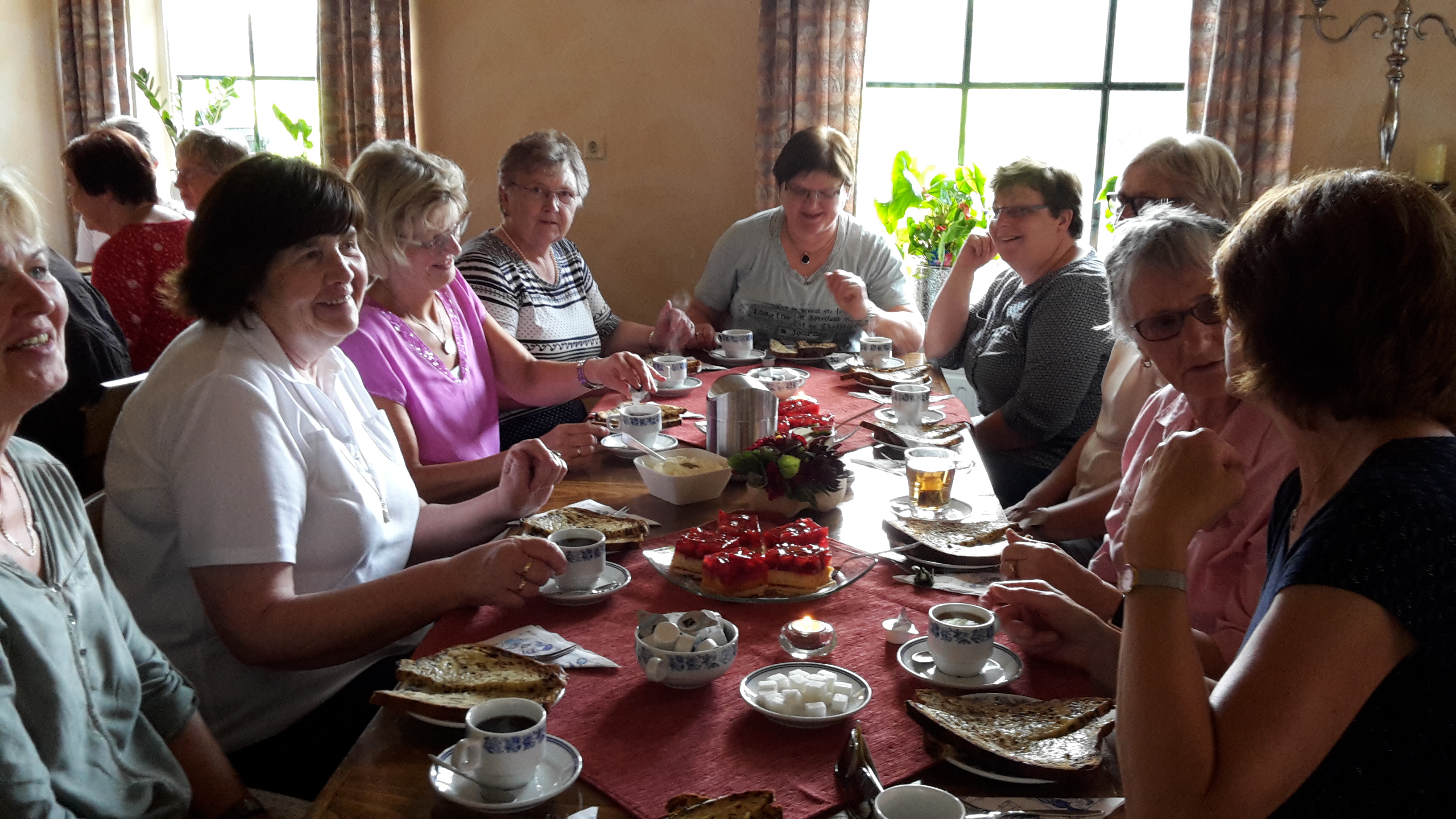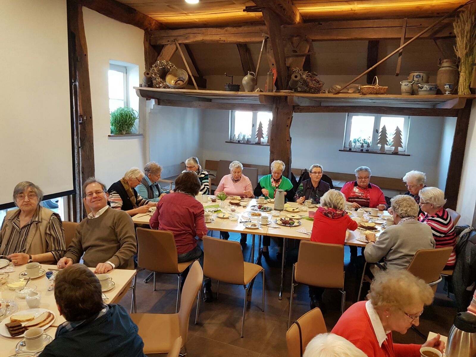 Zunächst traf man sich in der Kirche zu einem Wortgottesdienst unter dem Motto: „Wir sind nicht auf uns allein gestellt – denn einer ist da, der uns behütet“. Anschließend ging es in den Gasthof Giesbrecht zum gemütlichen Beisammensein bei Kaffee und selbstgebackener Torte.