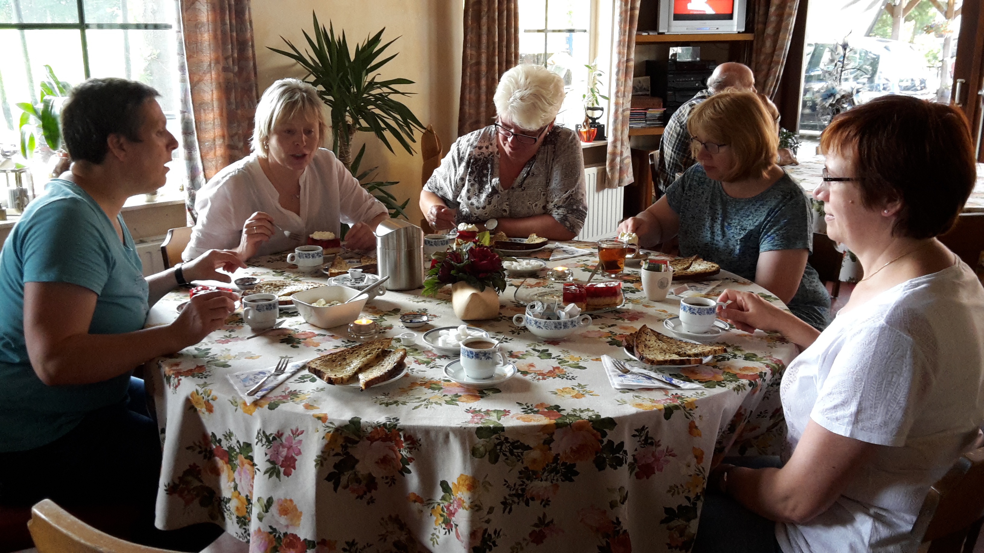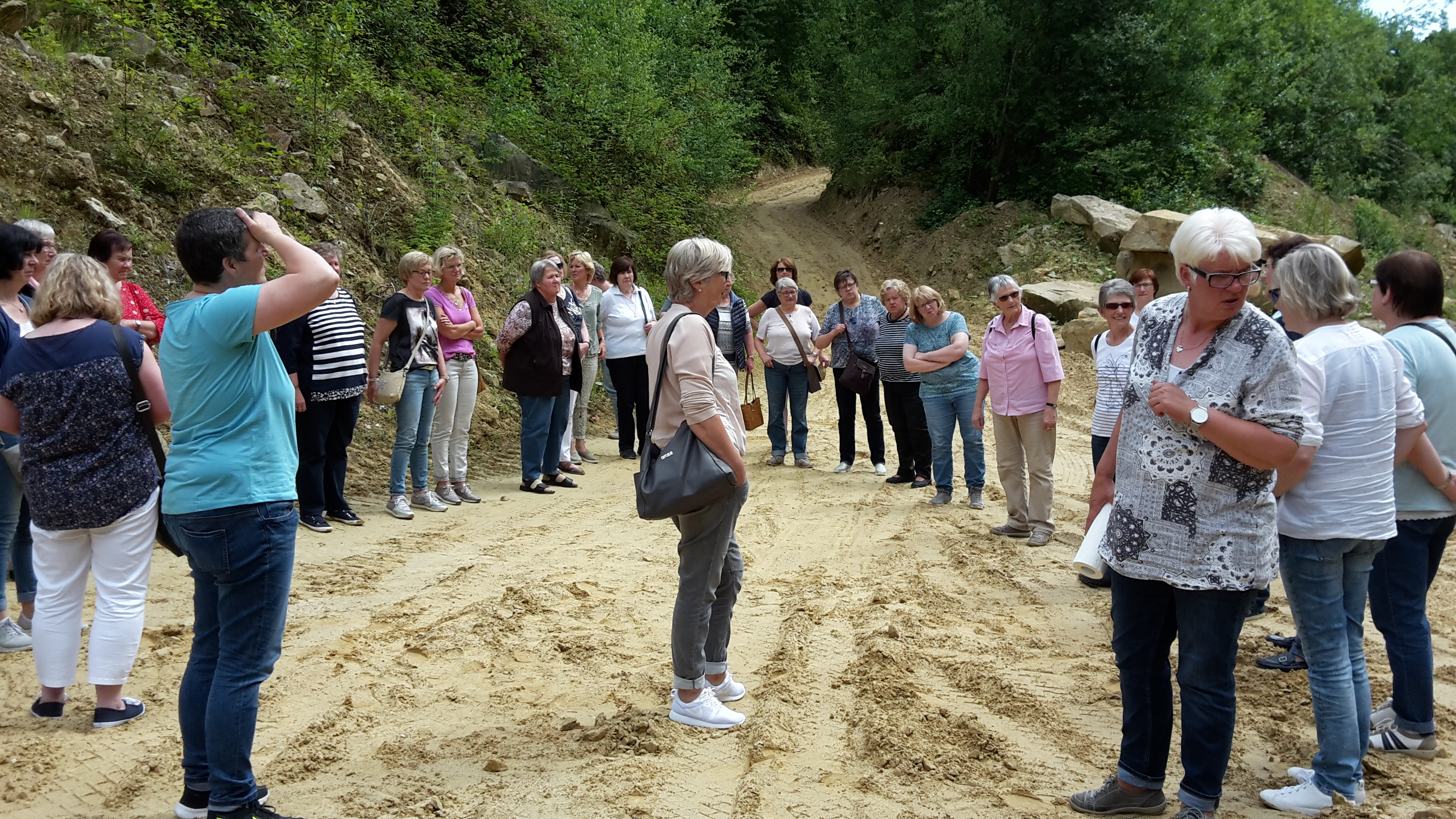 Der alljährliche Ausflug der kfd Beesten führte die Frauen in diesem Jahr in die Grafschaft Bentheim. Morgens ging es mit dem Bus zunächst zu Arnolds Bauernhofcafé in Samern. Hier wurde ein reichhaltiges Frühstücksbuffet serviert. Anschließend fuhr die Gruppe nach Bad Bentheim, wo die Gästeführerin Hildegard Kuhr vom Grafschafter Landservice zustieg. Während der Busfahrt lieferte sie interessante Informationen über Bad Bentheim und über die Gildehauser Steinbrüche, die als erstes besichtigt wurden. Im Steinbruch durfte sich dann jede Frau einen Sandstein suchen und als Andenken mitnehmen. Die nächste Station war der Steinmetz Lansmann in Gildehaus. Hier verarbeitet die Steinmetzin Petra Röseler-Lansmann den Bentheimer Sandstein. Sie gab den Frauen einen kleinen Einblick in ihre tägliche Arbeit. Danach ging es mit dem Bus weiter zum Kloster Bardel, das direkt an der holländischen Grenze liegt. Nach einer kurzen Besichtigung der Klosterkirche und einem kleinen Rundgang durch den Park machte die Gruppe sich auf den Weg über die holländische Grenze nach De Lutte zur Klompmakerij Koop. Hier konnten die Frauen sich zunächst bei Kaffee, Kuchen und Krintenstuten stärken, bevor der „Klompenmaker“ Johnny Knoop durch seinen Betrieb führte. Er zeigte sehr anschaulich und mit viel Humor die Herstellung eines Holzschuhs vom Holzstück bis hin zum fertigen Schuh. Im Anschluss konnten dann Produkte rund um den Holzschuh erworben werden. Danach ging es zurück nach Deutschland. Am früheren Grenzübergang Springbiel stieg ein „Zollbeamter“ in alter Uniform zu und berichtete von den vielfältigen Praktiken des damaligen Schmuggelns und von seiner Arbeit als Grenzinspektor. Nach den sehr interessanten Ausführungen fuhren die kfd Frauen wieder nach Beesten zurück. Alle Teilnehmerinnen hatten ihre Freude an diesem lehrreichen Ausflug bei bestem Wetter.