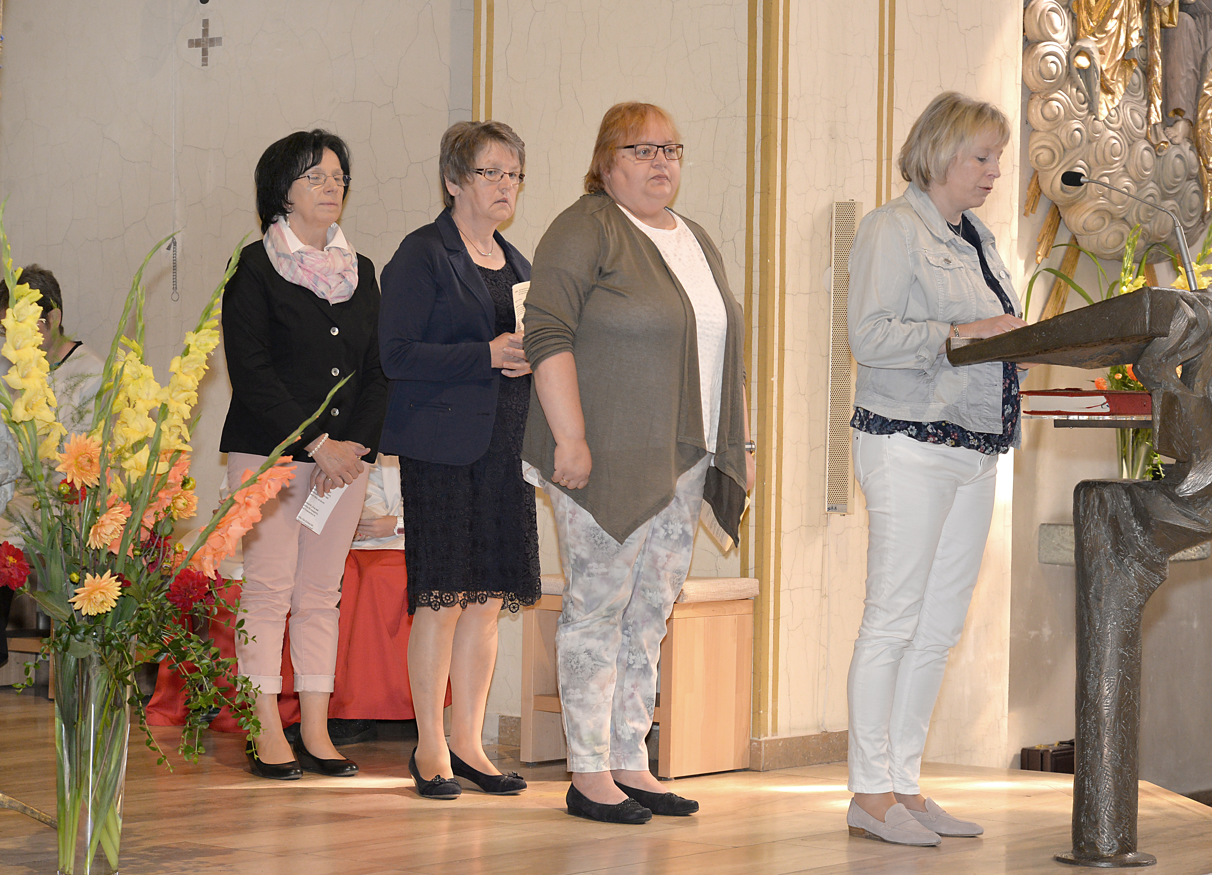 Nach einem reichhaltigen Frühstücksbuffet wurden Jahres- und Kassenbericht durch den Vorstand vorgetragen. Anschließend wurden vier Mitglieder des kfd-Leitungsteams verabschiedet. Ulla Budde, Anni Herbers, Gaby Fühner und Kerstin Snaadt-Meyer verlassen nach acht Jahren Amtszeit den Vorstand. Die Teamsprecherin Annegret Jürling bedankte sich im Namen der kfd Beesten ganz herzlich für die geleistete Arbeit der vier Frauen. Anschließend wurde Silvia Beckmann von den anwesenden kfd-Mitgliedern einstimmig in den Vorstand gewählt. Sie wird in Zukunft die Kassenverwaltung übernehmen.