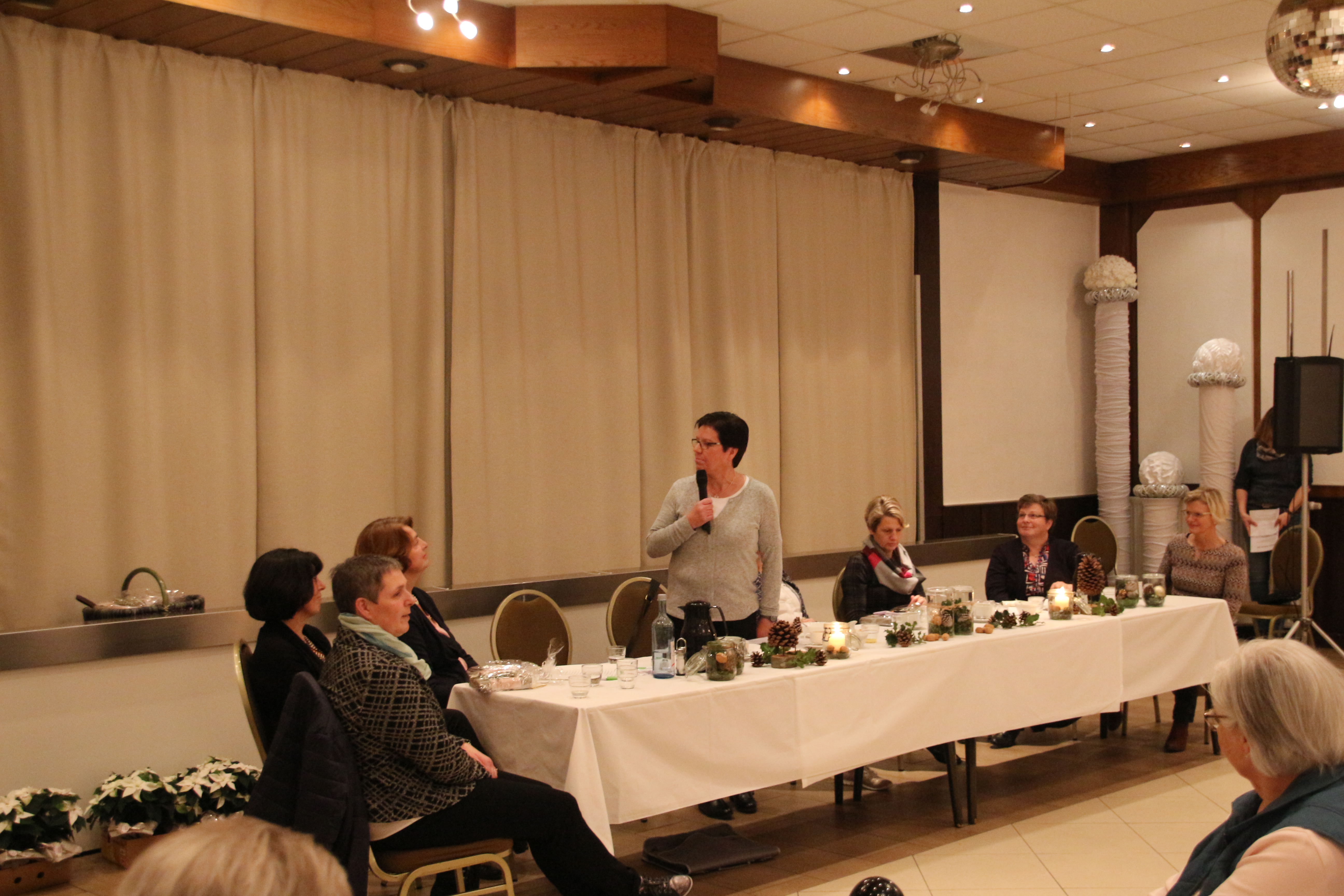 Im Folgenden wurde Irmgard Fuest für ihre 20jährige Tätigkeit als Bezirksfrau geehrt und die Barbara-Gruppe nahm die Gratulationen zu ihrem 40jährigen Bestehen entgegen. Ein besonderer Dank galt auch den Mitgliedern, die im Laufe des Jahres besondere Dienste verrichten.