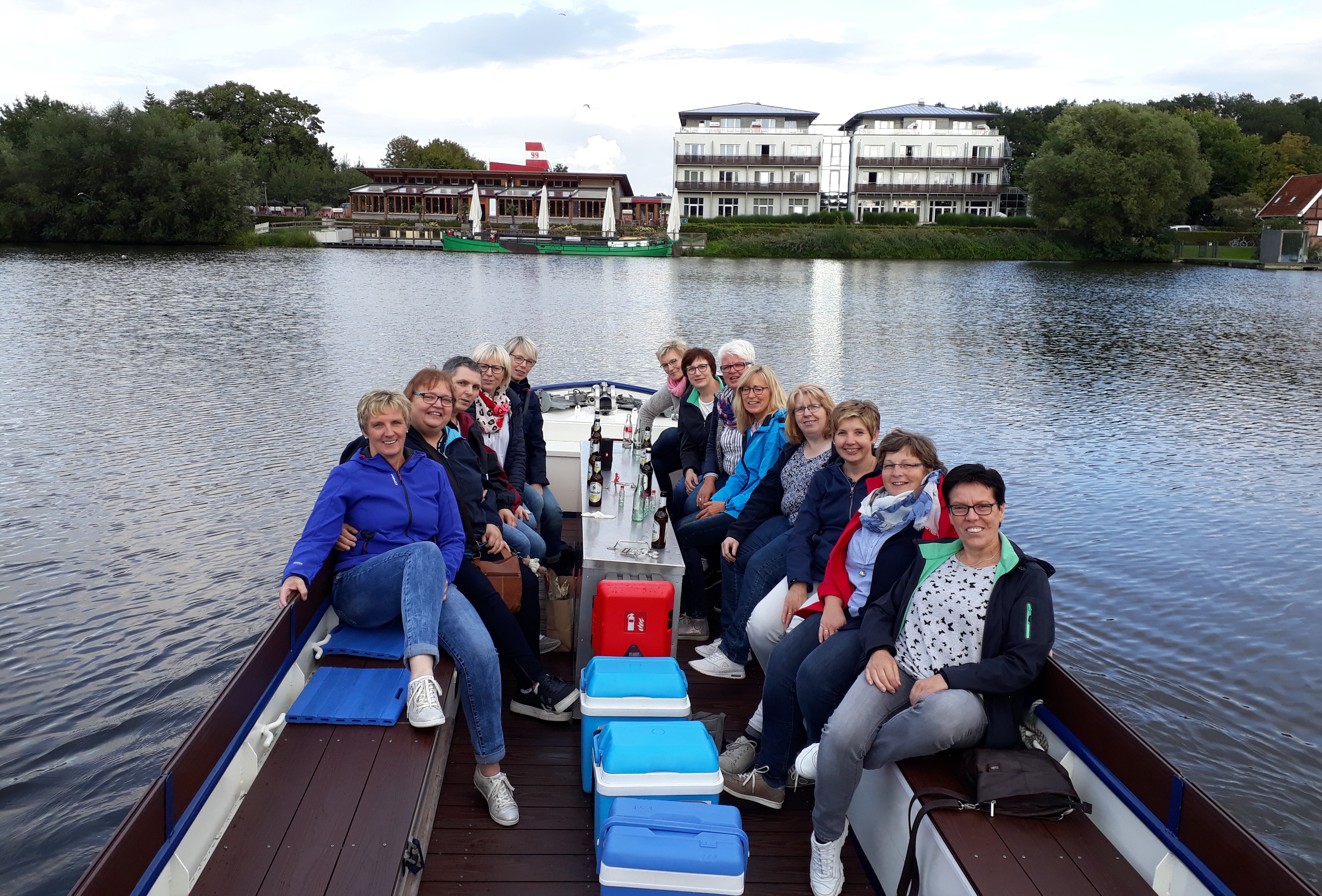Die Anna-Gruppe feiert in diesem Jahr ihr 25jähriges Bestehen!!! Die Gruppe besteht zur Zeit aus 23 Frauen, die sich nach wie vor jeden ersten Montag im Monat zu gemeinsamen Aktivitäten treffen. Zum Jubiläum machten die Frauen einen Ausflug nach Nordhorn. Zunächst gab es Kaffee und Kuchen in der Innenstadt und anschließend ging es dann gut gelaunt mit dem Boot „Vechteschute“ über die Grachten durch die Wasserstadt Nordhorn. Die zahlreichen wunderschönen Wasserwege geben der Stadt zu Recht den Namen „Klein Venedig“. Nach der feuchtfröhlichen Bootstour wurde dann noch mit einem Cocktail auf das Jubiläum angestoßen, bevor es zurück nach Beesten ging. Zum Abschluss wurde gegrillt und noch lange über alte Zeiten gesprochen. Ein Highlight hierbei war ein Quiz über die 25 Jahre der Anna-Gruppe, vorbereitet von Maria Schröder.