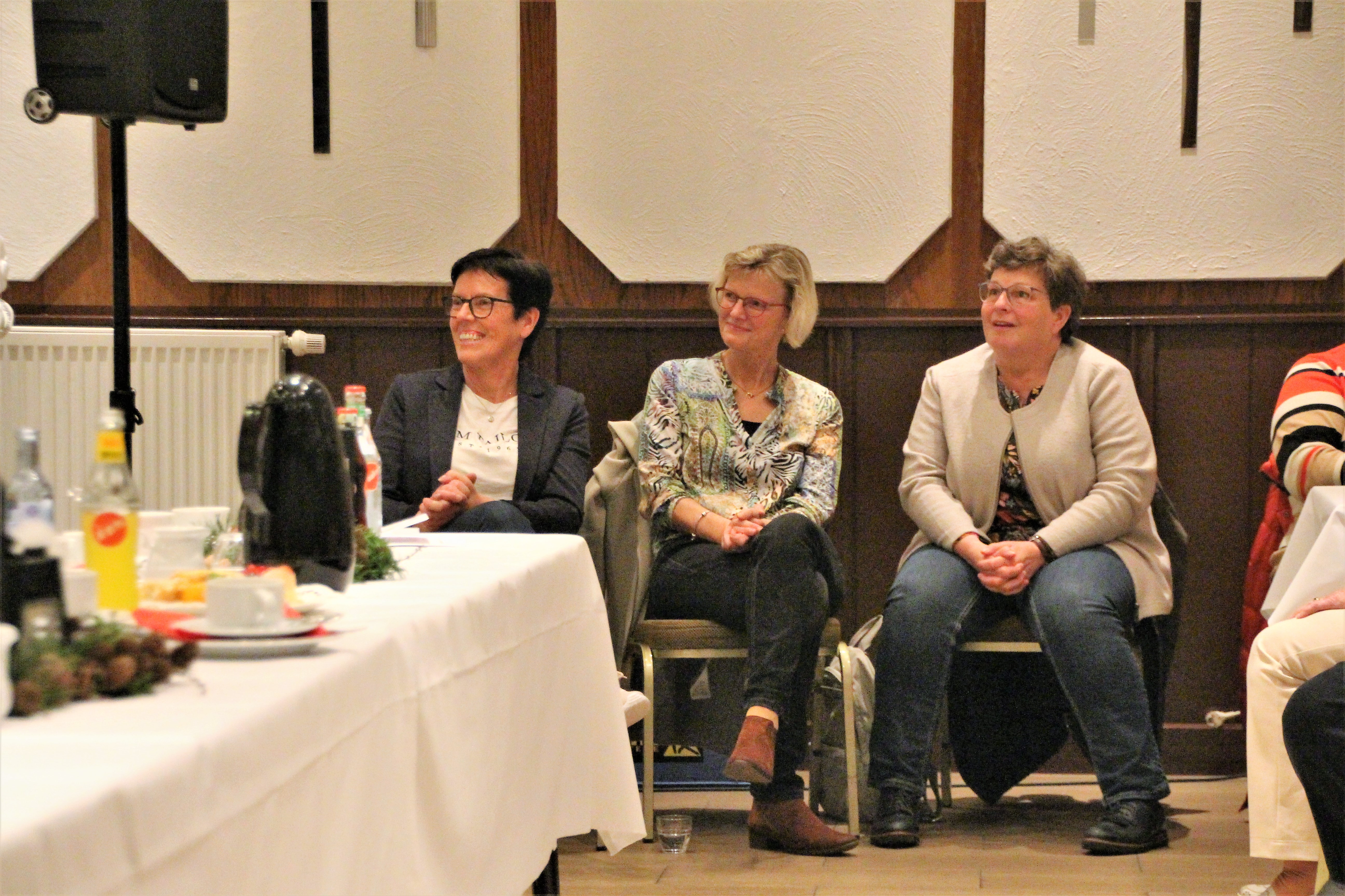Mit einem Wortgottesdienst in der St. Servatius Kirche begann unsere diesjährige Elisabethfeier. Anschließend nahmen 110 Frauen und Präses Pastor Schöneich an der Mitgliederversammlung im Saal Giesbrecht teil. Zunächst gab es Kaffee und Kuchen und im Anschluss wurden der Jahres- und der Kassenbericht verlesen. Kassenwartin Silvia Beckmann wurde einstimmig wieder in den Vorstand gewählt. Einige Frauen wurden geehrt für besondere Dienste wie die Organisation des monatlichen Frühstücks, die Grabpflege der Gedenkstätte, das Messedienen bei der Frauengemeinschaftsmesse und das Verteilen der Verbandszeitschrift. Außerdem konnten zehn Frauen neu in der kfd begrüßt werden.