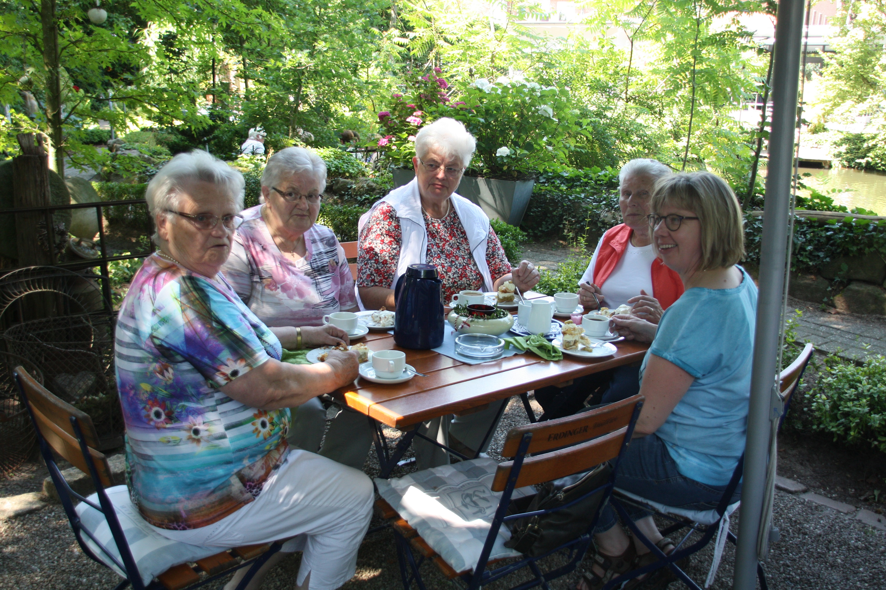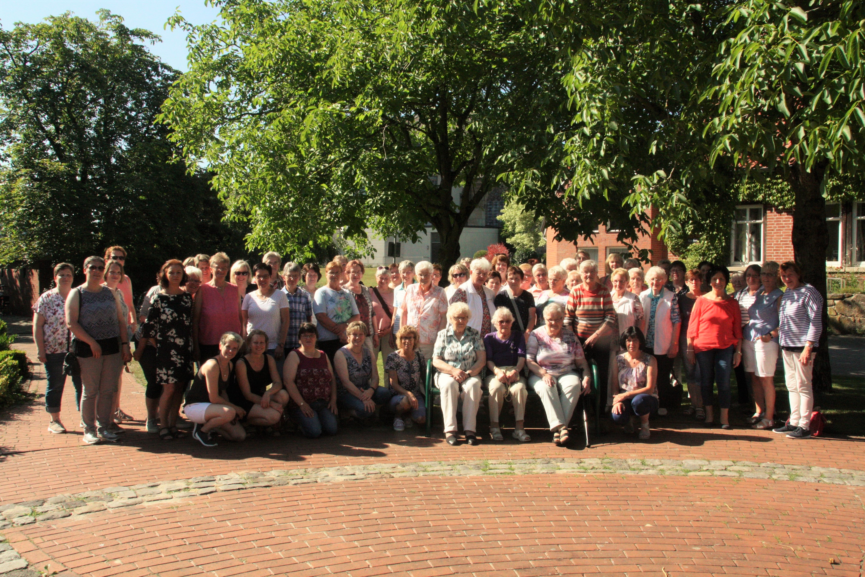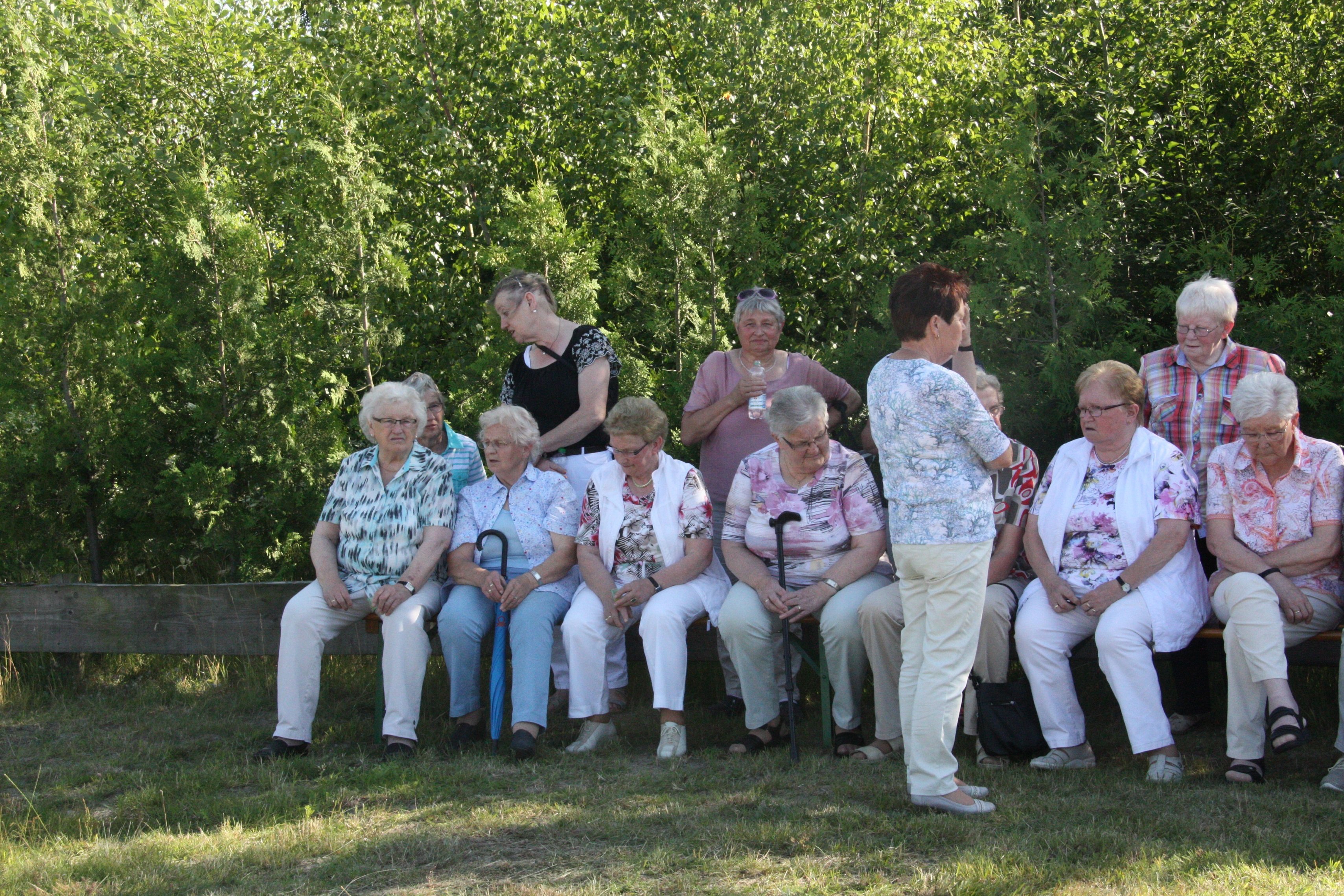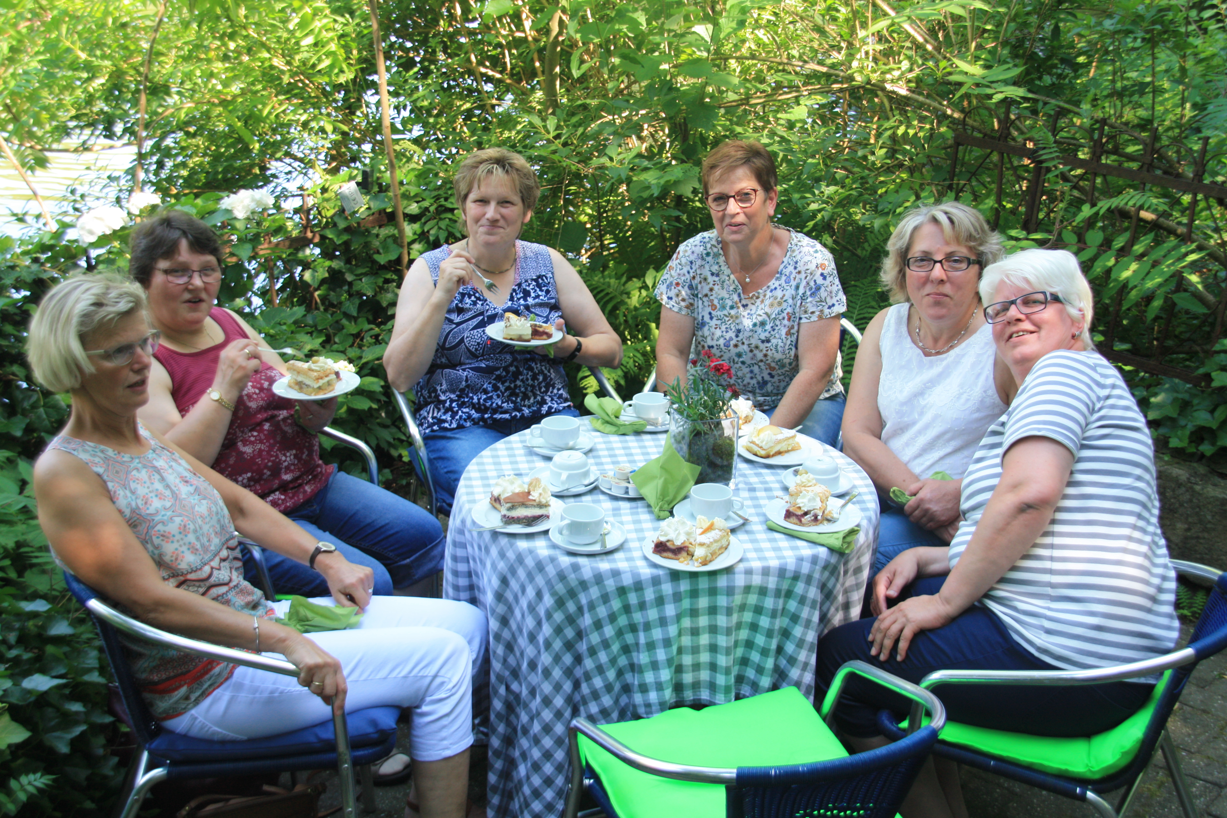 Am Freitag, den 29. Juni 2018 trafen sich 59 Frauen zur kfd-Fahrradtour. Los ging es bei herrlichem Sonnenschein Richtung Wilsten. An der Wilster Hütte konnten sich die Frauen bei kühlen Getränken erfrischen, bevor es weiterging Richtung Lünne. Im wunderschönen Biergarten der Gaststätte Helming in Lünne gab es in gemütlicher Runde Kaffee und Kuchen. Im Anschluss ging es rüber zum Haus Schmeing. Frau Bunge, vom Heimatverein Lünne, führte die Gruppe durch das Haus und durch den Garten. Frau Nichau präsentierte im Obergeschoss des Hauses ihre beeindruckende „Luther-Ausstellung“. Es war für alle Frauen eine interessante und informative Besichtigung. Mit dem Fahrrad ging es dann weiter zum „Maritimen Wohnen“ am Lünner See. Am Badestrand des Sees machte die Gruppe nochmal Halt, um sich zu erfrischen und den schönen Ausblick zu genießen. Danach ging es zurück nach Beesten, wo es in der Gaststätte Giesbrecht zum Abschluss ein leckeres Abendessen gab.